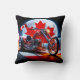Um helicóptero surpreendente adornado com uma bandeira canadense senta sobre um fundo vermelho e branco, iluminado por uma lua de cheio brilhante contra uma vista serena ao lado do lago.