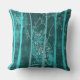 Almofadas de sotaque. Coruja decorativa e design de silhueta de árvore em um fundo de textura azul.