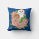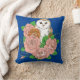 Almofada Coruja-Celeiro Azul Flores Rosa