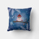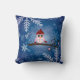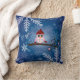 Brr...travesseiro decorativo design de floco de neve. Coruja rosa adorável empoleirada num membro de árvore decorada.