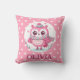 Coruja rosa fofinha personalizada vestindo capuz e cachecol nas bolinhas.