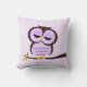 O travesseiro decorativo personalizado apresenta uma ilustração vetorial adorável de uma coruja empoleirada num ramo de árvore com um fundo bolinhas bonito.