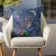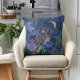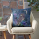 Almofada Coruja Roxa Mística e Lua em Azul Grave