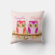Almofada Corujas cor-de-rosa & roxas da menina -