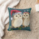 Travesseiro elegante e fofo com duas corujas de Natal sentados em um galho.