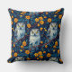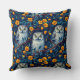 Almofada Corujas sobre fundo floral, flores, folhas, escuri