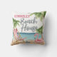 Travesseiro decorativo personalizado da Watercolor Beach House. Um tema legal de praia aquarela com tons cor-de-rosa e cor-de-rosa, colocando a vibração para uma fuga ou vibração da praia. Cadeira branca e rosa, guarda-chuva, e até um flamingo flutuando para diversão extra. Palmeiras balançando, conchas para colecionar — é tudo sobre aquelas vibrações frias da praia tropical. Com fontes modernas adicionando uma reviravolta de na moda. Excelente para uma casa de férias, ou só se você quiser trazer um pouco de vibração tropical para sua casa.