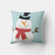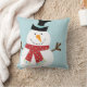 Caráter bonito em uma luz - fundo azul do boneco de neve (você pode personalizar a cor do fundo). Você pode personalizar este travesseiro com nome de família ou nome da criança. Ideal para um divertimento, decoração moderna dos feriados para sua sala de visitas, quarto do miúdo ou berçário. Alguns elementos por GrantAvenueDesign.