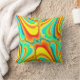 Travesseiro decorativo fractal e colorido, psíquico, apresentando um design fractal em vermelho, amarelo, laranja, verde e azul.