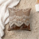 Este travesseiro exclusivo apresenta uma parte inferior de couro com ferramentas rústicas e uma camada de tecido de tula de voilha em forma de ovê no topo. No meio há uma grande banda de renda antiga atravessando. Uma borda de pérolas decorando o fundo do travesseiro e os laços de pérolas no topo dá ao travesseiro um elemento de elegância. O reverso do travesseiro tem um design mais simplista com couro marrom e duas filas de rendas e pérolas de safra largas. Este travesseiro trará um herdeiro da sofisticação ao seu decor ocidental.