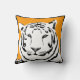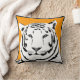Uma imagem preto e branco lindo do tigre no fundo da mostarda com a guarnição preta que destaca a borda. A imagem é duplicada em ambos o traseiro e dianteiro do coxim.