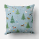 Um travesseiro bonito com pratas brincalhonas, dalmatianos e westies cercados por flocos de neve, abeto decorado e presentes festivos. O design, colocado contra um fundo azul claro, traz uma atmosfera de Natal alegre para qualquer espaço.