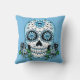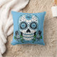 O crânio de açúcar Dia de los Muertos com rosas e corações em tons de azul.