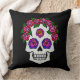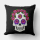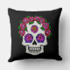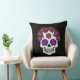 Um bom travesseiro decorativo com um bonito crânio de açúcar desenhado à mão com rosa. Perfeito para decorar sua casa para o Halloween e a estação assustadora.
