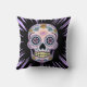 Crânio roxo do Dia de los Muertos com flores coloridas, diamante e coração.