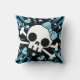 Crânio bonito e bósforos com arco cercado por corações e estrelas em tons de azul.
