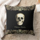 Na moda Gótico - travesseiro de sotaque Monograma para o seu decor de Halloween. Design apresenta um crânio branco com ornamentos de ouro sobre fundo preto. Personalize com seu nome ou texto personalizado. A cor de fundo é personalizável, para que você possa combinar o design com o decorador interior.