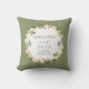 Um belo travesseiro decorativo de manutenção do casamento com uma coroa floral botânica de cor d'água com verde-verde, cor-de-rosa-pincel, champanhe, baunilha, pêssego, rosas de flores brancas e peônia sobre fundo branco e cinzas clássicas com sotaque de caligrafia com palavra "e" em um sábio elegante. Adicione seus nomes, data e local (ou deixe-o vazio) para criar sua própria decoração de casamento. Esta design pertence à coleção de casamento Cream e Ivory. Outras cores estão disponíveis.
