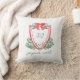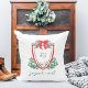 Este travesseiro chic, estilo vintage de Natal apresenta um design de Natal colorido e caprichoso. Uma crista vermelha brilhante com seu monograma e um arco é cercado por uma folhagem botânica verde-aquarela, e o guião manuscrito moderno diz "joyeux noël", ou "Feliz Natal" em francês.