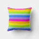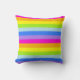 Simples travesseiro de matizes coloridas e fortes do arco-íris desenhado por Sarah Trett. Seria um excelente adicional a uma sala de brincadeira brilhante e colorida ou crianças com o quarto temático arco-íris.