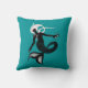 Travesseiro de sereia escura com uma ilustração digital que mostra uma bela criatura do mar negro - figura de meia-mulher, meia-peixe, com pele preta, olhos brilhantes, cabelo branco e cauda lindamente enrolada. Esta sirene estranha tem um colar de esqueletos de peixes e conchas. Este travesseiro gótico vai aumentar a decoração assustadora de sua casa de Halloween.