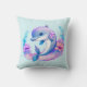 Um travesseiro com uma ilustração adorável. Um golfinho azul e roxo cercado por bonito plantas submarinas coloridas.