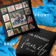 Crie seu próprio travesseiro decorativo de colagem de fotos com 13 das suas fotos favoritas em um fundo preto.Personalize com o nome da família e a data estabelecida.