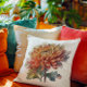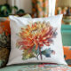 Almofada crisântemo em amarelo e laranja