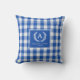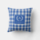 Almofada com Monograma em Xadrez Azul Elegante e Rústico com Brasão.