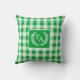 Elegante e Rústica Almofada de Arremesso com Crista de Monograma Xadrez Verde.