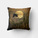 Os corvos passam pela lua de colheita brilhante sobre o campo de milho em um travesseiro único.