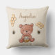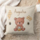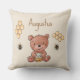 Este travesseiro decorativo personalizado apresenta um tema bonito de urso de mel. Uma imagem ilustrada de um filhote de ursos é fotografada no centro com um boião de mel. Coloca-se em volta do pente de mel e duas pequenas abelhas com um nome de amostra acima. Você pode personalizar o travesseiro para incluir seu próprio nome personalizado ou texto.