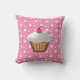 Diversão e cupcake festivo têm um fundo cor-de-rosa do tipo polka-ponto com um cupcake de baunilha com gelo branco e uma cereja no topo. Excelente para o dono da padaria, amante de cupcake e sobremesa, ou apenas uma garota fofa!