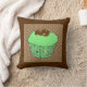 Cupcake com glacé verde de menta, revestido de cotovelos de chocolate, num invólucro decorativo, de cupcake fractal verde, sobre um travesseiro decorativo de fundo com padrão de espiral castanho e bege