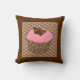 Cupcake rosa de morango com Fosco cor-de-rosa com borboleta de chocolate num invólucro decorativo de cupcake com estampo de damascos de chocolate, num travesseiro decorativo de fundo castanho, bronzeado e cor-de-coral cor-de-rosa-rosa-chinês