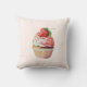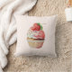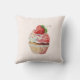 Travesseiro com uma ilustração brilhante com um cupcake delicioso. Sorvete branco e um morango grande adoram este doce doce doce.