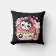 Este design apresenta um crânio de chocolate kawaii com coberturas coloridas num cupcake pirata giro com estrelas e corações adoráveis no travesseiro negro do Mojo americano.