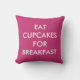 Esta fúcsia, travesseiro é decorada com o ditado fofo, Coma Cupcakes para o café da manhã na frente, e o verso é decorado com um nome ou qualquer coisa que você preferir, fazer perfeito para um quarto ou berçário.