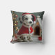 A almofada de uma boneca Dalmaciana vestida com uma fantasia de Papai noel para o Natal cria uma atmosfera de Natal feliz no espaço interior.