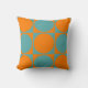 A almofada de sofá de algodão quadrado mostra quadrados e círculos com padrão em laranja e azul. "Personalizar!" permite trocar a cor de fundo por uma cor do gráfico para a direita. Se um produto ainda não publicado tiver apanhado os olhos, utilize o botão de contato abaixo.