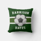 A almofada do amante de futebol com fundo verde e listras brancas. A almofada pode ser personalizada com um nome e sobrenome na frente e atrás. Isso faria o acessório perfeito para o quarto de qualquer garoto ou garota ou para o lugar dele no sofá.