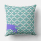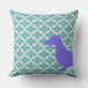 Almofada única com metade da silhueta de um dachshund roxo na frente e a outra metade na parte traseira.