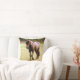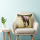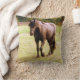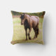 Cavalo marrom relaxado caminhando em sua direção nesta almofada. Linda, natural e calmamente andando pelo campo para cumprimentá-lo. Um cavalo nobre e maravilhoso, travesseiro excelente para qualquer amante de cavalos. A fotografia do cavalo está na frente e a parte de trás é uma cor verde-azeitona comum.