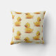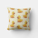 É uma almofada amarela de pato. É um design bonito com amarelo e pato.