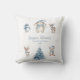 This sweet Christmas pillow features adorable watercolor woodland animals — a bunny, bear, deer, and penguin — all bundled up in cozy blue winter scarves. Personalized with your baby’s name and the year, this charming design makes a heartwarming keepsake for celebrating your little one’s first Christmas. Perfect for nurseries, holiday photos, and thoughtful newborn gifts.