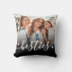 Create a custom keepsake with this personalized square pillow, featuring your favorite photo printed on both sides. “Besties” appears across the bottom in flowing script, accented by small heart details, with a subtle black gradient behind the text to make it stand out.