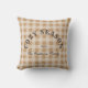 Custom Brown Script Rustic Western Gingham Pattern Throw Pillow .