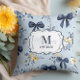 Almofada Custom Elegant Blue Bow Floral Monogram