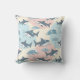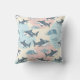 This adorable shark-themed throw pillow features a playful, hand-drawn pattern of smiling great white sharks, floating bubbles, and stylized ocean waves, The unique pastel color palette—blending soft baby blue, muted pink, and creamy off-white—makes it a versatile choice for both boys' and girls' rooms.