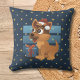 A throw pillow with illustration of cute German Shepherd with a present on a starry night dark blue background, illustrated by Radka2D